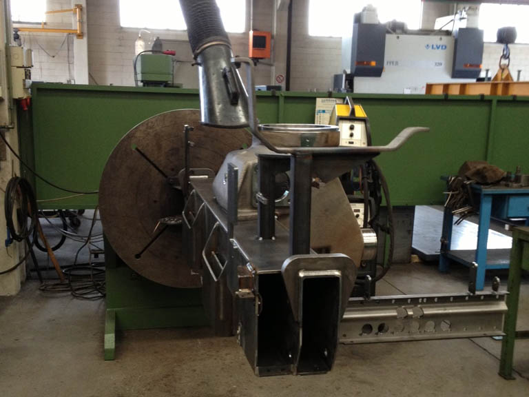 Esempio di lavorazione con taglio al plasma di lamiera con piegatura per assemblaggio. Inoltre esempio di saldatura manuale e robotizzata di basamenti e supporti stabilizzatori di gru idrauliche.